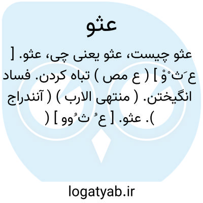 عثو. [ ع ُ ث ُوو ] ( ع مص ) فاسد کردن. ( اقرب الموارد ). || ( اِمص ) مبالغت در فساد یا کبر یا کفر. ( اقرب الموارد ).