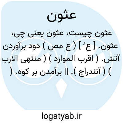 عثون. [ ع ُ ] ( ع مص ) دود برآوردن آتش. ( اقرب الموارد ) ( منتهی الارب ) ( آنندراج ). || برآمدن بر کوه. ( اقرب الموارد ) ( منتهی الارب ) ( آنندراج ). || دود دادن جامه را به بوی خوش تا خوشبو شود. ( اقرب الموارد ).