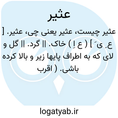 عثیر. [ ع ِ ی َ ] ( ع اِ ) خاک. || گرد. || گل و لای که به اطراف پایها زیر و بالا کرده باشی. ( اقرب الموارد ) ( منتهی الارب ). || نشان پنهان. ( ناظم الاطباء ) ( اقرب الموارد ): واز عثیر عبیربیز ادهم جهانگرد... خاک آن وادی را...خاصیت سرمه اصفهانی بخشیده. ( دره نادره ص 388 ).