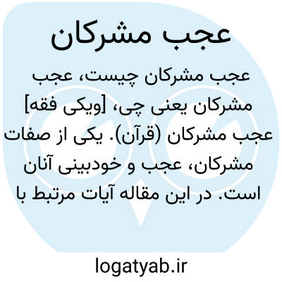 [ویکی فقه] عجب مشرکان (قرآن). یکی از صفات مشرکان، عجب و خودبینی آنان است. در این مقاله آیات مرتبط با عجب مشرکان معرفی می شوند.
