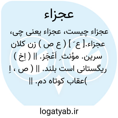عجزاء.[ ع َ ] ( ع ص ) زن کلان سرین. مؤنث ِ اَعْجَز. || ( اِخ ) ریگستانی است بلند. || ( ص، اِ )عقاب کوتاه دم. || عقابی که در دم او پر سفید باشد. ( اقرب الموارد ) ( منتهی الارب ) ( آنندراج ). || زنی که کف دست او درشت باشد. ( منتهی الارب ) ( آنندراج ). الشدید دایرة الکف. ( اقرب الموارد ).
