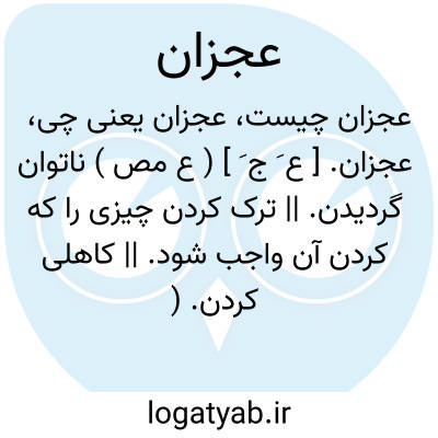 عجزان. [ ع َ ج َ ] ( ع مص ) ناتوان گردیدن. || ترک کردن چیزی را که کردن آن واجب شود. || کاهلی کردن. ( منتهی الارب ) ( آنندراج ).
