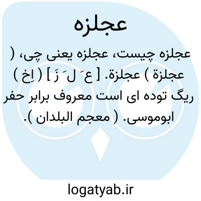 ( عجلزة ) عجلزة. [ ع َ ل َ زَ ] ( اِخ ) ریگ توده ای است معروف برابر حفر ابوموسی. ( معجم البلدان ). در نقائض عَلَجزة ضبط شده است. ( معجم البلدان ).