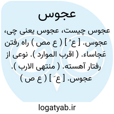 عجوس. [ ع ُ ] ( ع مص ) راه رفتن عَجاساء. ( اقرب الموارد ). نوعی از رفتار آهسته. ( منتهی الارب ).