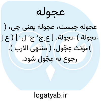 ( عجولة ) عجولة. [ ع ِج ْ ج َ ل َ ] ( ع اِ )مؤنث عِجّول. ( منتهی الارب ). رجوع به عِجّول شود.