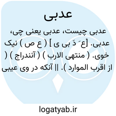 عدبی. [ع َ دَ بی ی ] ( ع ص ) نیک خوی. ( منتهی الارب ) ( آنندراج ) ( از اقرب الموارد ). || آنکه در وی عیبی نباشد. ( از اقرب الموارد ) ( قطرالمحیط ) ( منتهی الارب ).