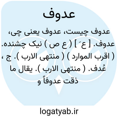 عدوف. [ ع َ ] ( ع ص ) نیک چشنده. ( اقرب الموارد ) ( منتهی الارب ). ج، عُدف. ( منتهی الارب ). یقال ما ذقت عدوفاً و لا عدوفة؛ ای شیئاً. ( منتهی الارب ). || ( اِ ) خورش ستور. ( اقرب الموارد ) ( منتهی الارب ) ( آنندراج ). || علف. ( از قطرالمحیط ). علف و این لغت مُضَر است. ( منتهی الارب ).
