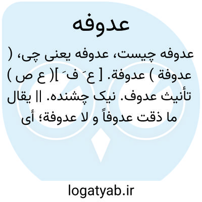 ( عدوفة ) عدوفة. [ ع َ ف َ ]( ع ص ) تأنیث عدوف. نیک چشنده. || یقال ما ذقت عدوفاً و لا عدوفة؛ أی شیئاً. ( منتهی الارب ).