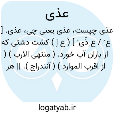 عذی. [ ع َ / ع ِذْی ْ ] ( ع اِ ) کشت دشتی که از باران آب خورد. ( منتهی الارب ) ( از اقرب الموارد ) ( آنندراج ). || هر شهر که شوره ندارد. ( منتهی الارب ) ( آنندراج ).