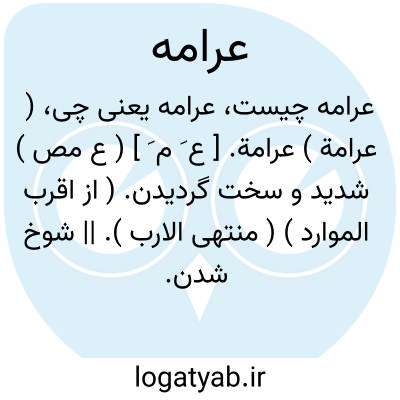 ( عرامة ) عرامة. [ ع َ م َ ] ( ع مص ) شدید و سخت گردیدن. ( از اقرب الموارد ) ( منتهی الارب ). || شوخ شدن. ( منتهی الارب ). || احمق شدن. ( تاج المصادر ).