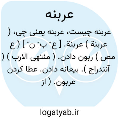 ( عربنة ) عربنة. [ ع َ ب َ ن َ ] ( ع مص ) ربون دادن. ( منتهی الارب ) ( آنندراج ). بیعانه دادن. عطا کردن عربون. ( از اقرب الموارد ). رجوع به عربون شود.