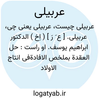 عربیلی. [ ع َ رَ ] ( اِخ ) الدکتور ابراهیم یوسف. او راست: حل العقدة بملخص الافادةفی انتاج الاولاد حسب الارادة. ( معجم المطبوعات ج 2 ).