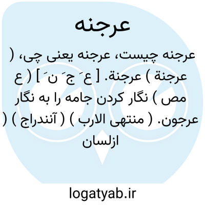 ( عرجنة ) عرجنة. [ ع َ ج َ ن َ ] ( ع مص ) نگار کردن جامه را به نگار عرجون. ( منتهی الارب ) ( آنندراج ) ( ازلسان العرب ). صورتهای عرجون در جامه تصویر کردن. ( از اقرب الموارد ). || زدن کسی را به عرجون.( منتهی الارب ) ( آنندراج ) ( از اقرب الموارد ). || آلودن و طلا نمودن به خون یا به زعفران یا خضاب کردن. ( منتهی الارب ) ( آنندراج ) ( از اقرب الموارد ).