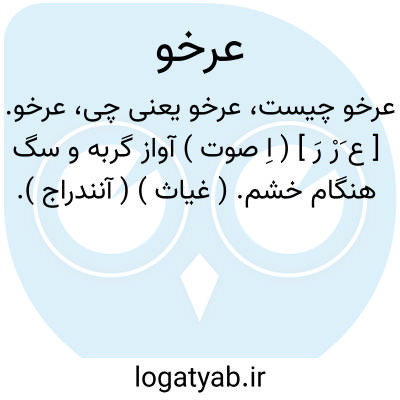 عرخو. [ ع َرْ رَ ] ( اِ صوت ) آواز گربه و سگ هنگام خشم. ( غیاث ) ( آنندراج ).
