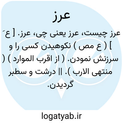 عرز. [ ع َ ] ( ع مص ) نکوهیدن کسی را و سرزنش نمودن. ( از اقرب الموارد ) ( منتهی الارب ). || درشت و سطبر گردیدن. ( منتهی الارب ). || گرفته و ترنجیده گردیدن و منقبض شدن. ( ناظم الاطباء ). || سخت کشیدن. ( منتهی الارب ) ( از اقرب الموارد ) ( از ناظم الاطباء ). || در کف گرفتن چیزی را و چسبانیدن انگشتان را بر آن، به اینکه می نماید از آن برخی و ننماید تمام آنرا تا که مشتاق دیدنش گردد. ( منتهی الارب ) ( از اقرب الموارد ).