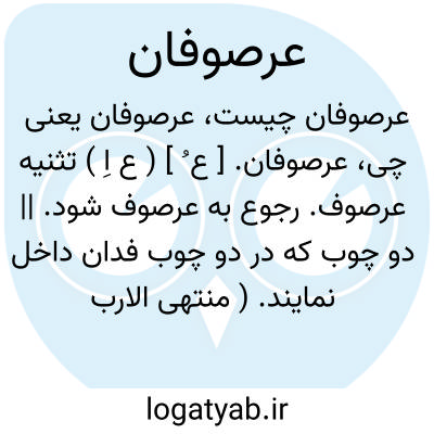 لغت نامه دهخدا عرصوفان. [ ع ُ ] ( ع اِ ) تثنیه عرصوف. رجوع به عرصوف شود. || دو چوب که در دو چوب فدان داخل نمایند. ( منتهی الارب ) ( از اقرب الموارد ).