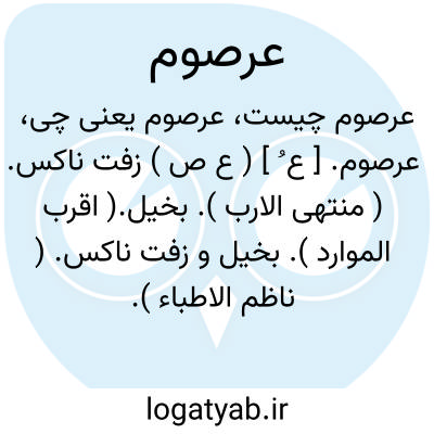 لغت نامه دهخدا عرصوم. [ ع ُ ] ( ع ص ) زفت ناکس. ( منتهی الارب ). بخیل.( اقرب الموارد ). بخیل و زفت ناکس. ( ناظم الاطباء ).