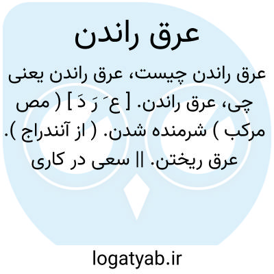 عرق راندن. [ ع َ رَ دَ ] ( مص مرکب ) شرمنده شدن. ( از آنندراج ). عرق ریختن. || سعی در کاری کردن. ( از آنندراج ):