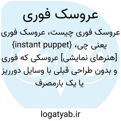 {instant puppet} [هنرهای نمایشی] عروسکی که فوری و بدون طراحی قبلی با وسایل دورریز یا یک بارمصرف ساخته می شود