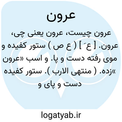 عرون. [ ع َ ] ( ع ص ) ستور کفیده و موی رفته دست و پا. و اسب «عرون »زده. ( منتهی الارب ). ستور کفیده دست و پای و موی رفته. اسب «عرنة»زده. ( ناظم الاطباء ). دابه که به بیماری «عِران » دچار شده باشد. ( از اقرب الموارد ). و رجوع به عَرَن شود.