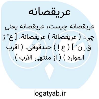 لغت نامه دهخدا ( عریقصانة ) عریقصانة. [ ع ُ رَ ق ِ ن َ ] ( ع اِ ) حندقوقی. ( اقرب الموارد ) ( از منتهی الارب ). اسم حندقوقی است، یا یربطوره است. ( مخزن الادویة ). و رجوع به عرقصاء شود.