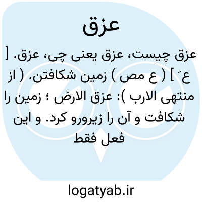 عزق. [ ع َ ] ( ع مص ) زمین شکافتن. ( از منتهی الارب ): عزق الارض؛ زمین را شکافت و آن را زیرورو کرد. و این فعل فقط برای زمین بکار میرود. ( از اقرب الموارد ). نعت آن أرض معزوقة باشد. || شتابی نمودن در دویدن. ( از منتهی الارب ). سرعت کردن در دویدن. ( از اقرب الموارد ). || بازداشتن، چنانکه گویند: عزق الخیر عنی؛ یعنی بازداشت نیکوئی را از من. ( از منتهی الارب ): عزق الخبر عنی؛ خبر را از من بازداشت. ( از اقرب الموارد ) ( از تاج العروس ). || مبالغه کردن در زدن. ( منتهی الارب ) ( از اقرب الموارد ).