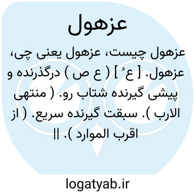 عزهول. [ ع ُ ] ( ع ص ) درگذرنده و پیشی گیرنده شتاب رو. ( منتهی الارب ). سبقت گیرنده سریع. ( از اقرب الموارد ). || تیزرو و چست و سبکروح. ( منتهی الارب ). سریع خفیف. ( اقرب الموارد ). || شتر نر برسرخودگذاشته و شتر به چرا رهاکرده. ( منتهی الارب ). جمل و شتر اهمال شده. ( از اقرب الموارد ). ابل. ( مخزن الادویه ). ج، عَزاهیل. ( اقرب الموارد ) ( منتهی الارب ).