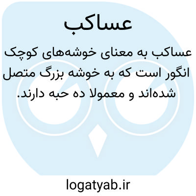 کلمه‌ی «عساکب» در فارسی به معنای خوشه‌های کوچک انگور است که به خوشه‌های بزرگ متصل شده‌اند. این واژه جمع «عسکبه» است و در اصل به خوشه‌ای گفته می‌شود که معمولاً شامل حدود ده حبه انگور است. عساکب بیشتر در اصطلاح کشاورزی و باغبانی برای توصیف ساختار خوشه‌های انگور به کار می‌رود و نشان‌دهنده نظم و ترکیب طبیعی حبه‌ها در یک خوشه است. «عساکب» از واژه‌های قدیمی فارسی است و در متون ادبی و فرهنگی نیز دیده می‌شود، به ویژه در شعر و نثر که به زیبایی‌های طبیعت و باغ‌های انگور اشاره دارد. این کلمه بار مثبت دارد و بیشتر برای توصیف کیفیت و زیبایی انگورها استفاده می‌شود. در مکالمات روزمره کمتر شنیده می‌شود و عمدتاً در متون تخصصی کشاورزی، باغبانی یا ادبیات کلاسیک به کار می‌رود. مترادف‌هایی که نزدیک به معنای آن باشند شامل خوشه‌های کوچک انگور یا خوشه‌های پیوسته است.