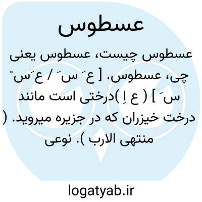 عسطوس. [ ع َ س َ / ع َس ْ س َ ] ( ع اِ )درختی است مانند درخت خیزران که در جزیره میروید. ( منتهی الارب ). نوعی درخت است شبیه به خیزران. ( مخزن الادویة ). درختی است چون خیزران، و گویند خود خیزران است، و گویند درختی است در الجزیره که شاخه های نرم دارد. ( از اقرب الموارد ). || مهتر ترسایان در لغت رومیان. ( از منتهی الارب ) ( از اقرب الموارد ).