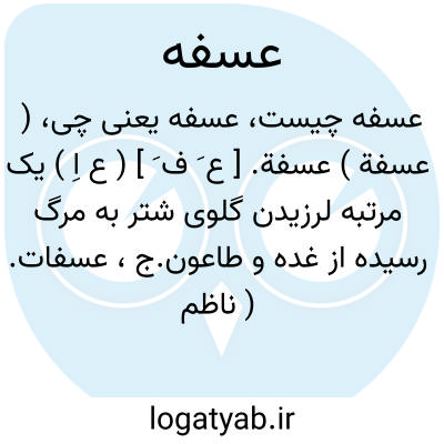 ( عسفة ) عسفة. [ ع َ ف َ ] ( ع اِ ) یک مرتبه لرزیدن گلوی شتر به مرگ رسیده از غده و طاعون.ج، عسفات. ( ناظم الاطباء ). و رجوع به عَسَفات شود.