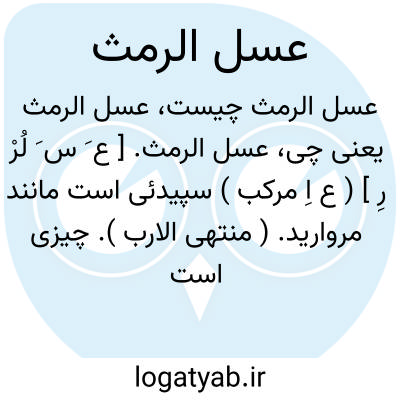 عسل الرمث. [ ع َ س َ لُرْ رِ ] ( ع اِ مرکب ) سپیدئی است مانند مروارید. ( منتهی الارب ). چیزی است سپیدمانند جُمان و مروارید. ( از اقرب الموارد ). شبنمی است که بر درخت رمث نشیند، و آن چیزی است سفید و شیرین، و گفته اند که آن شکر تیغال است. ( مخزن الادویة ).