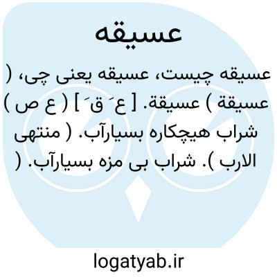 ( عسیقة ) عسیقة. [ ع َ ق َ ] ( ع ص ) شراب هیچکاره بسیارآب. ( منتهی الارب ). شراب بی مزه بسیارآب. ( ناظم الاطباء ). شراب ردی و بسیارآب، وآن را عَسَق نیز ضبط کرده اند. ( از اقرب الموارد ).