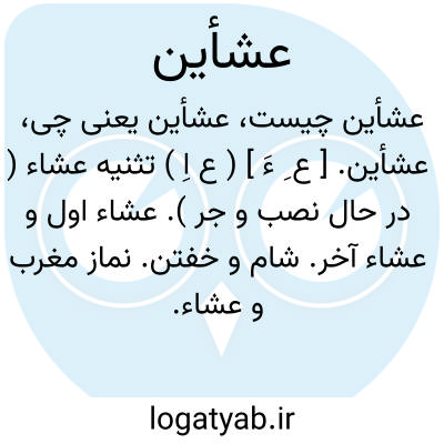 عشأین. [ ع ِ ءَ ] ( ع اِ ) تثنیه عشاء ( در حال نصب و جر ). عشاء اول و عشاء آخر. شام و خفتن. نماز مغرب و عشاء. ( یادداشت مرحوم دهخدا ). و رجوع به عِشاء شود.
