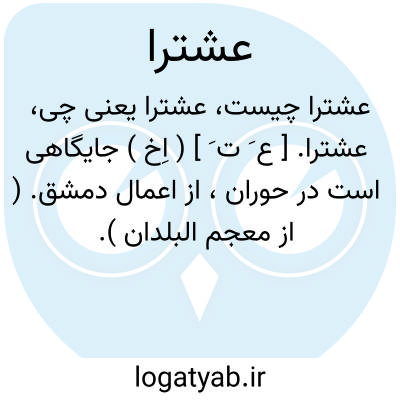 عشترا. [ ع َ ت َ ] ( اِخ ) جایگاهی است در حوران، از اعمال دمشق. ( از معجم البلدان ).