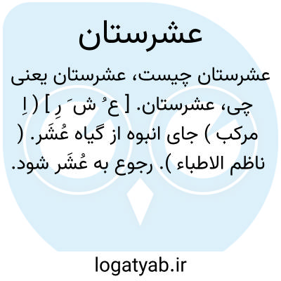 لغت نامه دهخدا عشرستان. [ ع ُ ش َ رِ ] ( اِ مرکب ) جای انبوه از گیاه عُشَر. ( ناظم الاطباء ). رجوع به عُشَر شود.