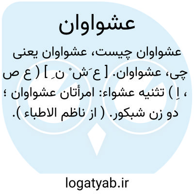عشواوان. [ ع َش ْ ن ِ ] ( ع ص، اِ ) تثنیه عشواء: امرأتان عشواوان؛ دو زن شبکور. ( از ناظم الاطباء ). رجوع به عشواء شود.