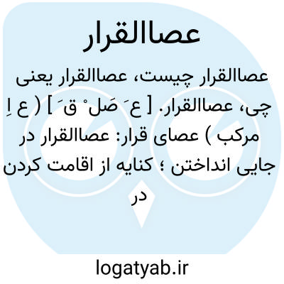 ( اسم ) یا عصالقرار در جایی انداختن. ( مصدر ) اقامت کردن در جایی وترک سفرنمودن ( زیرا مسافر چون بمنزل فرود آید عصای سفر بیکسو اندازد و از رنج راه بیاساید ): و اینک چهار سال شد که عصا القرار در این دار الفرار.... انداخته ام. عصای قرار قصا القرار در جایی انداختن کنایه از اقامت کردن در جایی و ترک سفر نمودن است زیرا مسافر چون به منزل فرود آید عصای سفر به یک سو اندازد و از رنج راه بیاساید