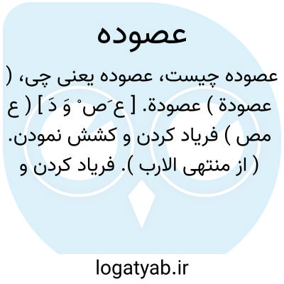 ( عصودة ) عصودة. [ ع َص ْ وَ دَ ] ( ع مص ) فریاد کردن و کشش نمودن. ( از منتهی الارب ). فریاد کردن و کشتار نمودن. ( از ناظم الاطباء ) ( از اقرب الموارد ).