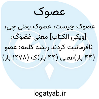 دانشنامه اسلامی [ویکی الکتاب] معنی عَصَوْکَ: نافرمانیت کردندریشه کلمه: عصو (۴۴ بار)عصی (۴۴ بار)ک (۱۴۷۸ بار)
