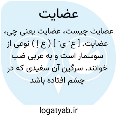 عضایت. [ ع َ ی َ ] ( ع اِ ) نوعی از سوسمار است و به عربی ضب خوانند. سرگین آن سفیدی که در چشم افتاده باشد ببرد. و آن را عضا هم میگویند به حذف تحتانی و ها. ( برهان ). و رجوع به عضایة شود.