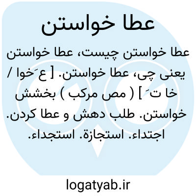 عطا خواستن. [ ع َخوا / خا ت َ ] ( مص مرکب ) بخشش خواستن. طلب دهش و عطا کردن. اجتداء. استجازة. استجداء. استعطاء. استماحة. استمناح. استهناء. تعطی. جدی. مجاداة: