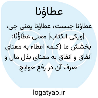 [ویکی الکتاب] معنی عَطَاؤُنَا: بخشش ما (کلمه اعطاء به معنای انفاق و انفاق به معنای بذل مال و صرف آن در رفع حوایج خویشتن و یا دیگران است )