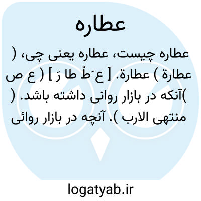 ( عطارة ) عطارة. [ ع َطْ طا رَ ] ( ع ص )آنکه در بازار روانی داشته باشد. ( منتهی الارب ). آنچه در بازار روائی داشته باشد. ( ناظم الاطباء ): ناقة عطارة؛ ماده شتر که در بازار رایج است و خریدار دارد. ( از اقرب الموارد ). || مؤنث عطار، یعنی زن بوی خوش فروش. ( ناظم الاطباء ). و رجوع به عطار شود.