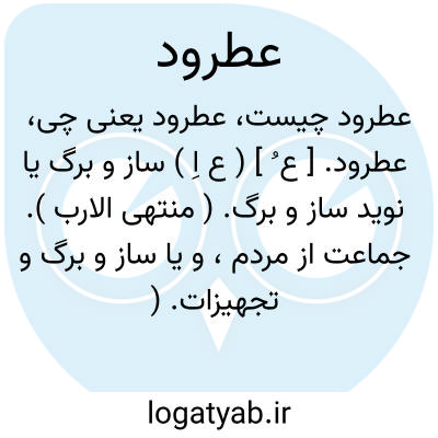 عطرود. [ ع ُ ] ( ع اِ ) ساز و برگ یا نوید ساز و برگ. ( منتهی الارب ). جماعت از مردم، و یا ساز و برگ و تجهیزات. ( از اقرب الموارد ). رجوع به عطردة شود.