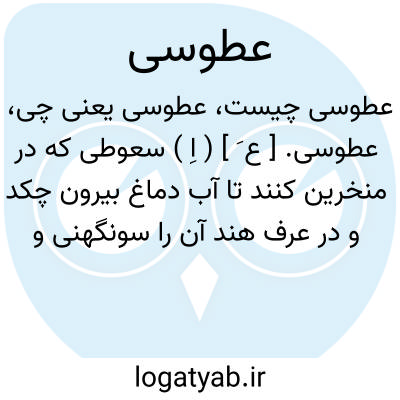 عطوسی. [ ع َ ] ( اِ ) سعوطی که در منخرین کنند تا آب دماغ بیرون چکد و در عرف هند آن را سونگهنی و ناس خوانند. ( آنندراج ). نشوق و آنچه به بینی کشند. ( ناظم الاطباء ). عطوس و رجوع به عطوس شود.