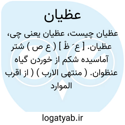 عظیان. [ ع َ ظْ ] ( ع ص ) شتر آماسیده شکم از خوردن گیاه عنظوان. ( منتهی الارب ) ( از اقرب الموارد ). عَظی. عَظ. و رجوع به عظ و عظی شود.