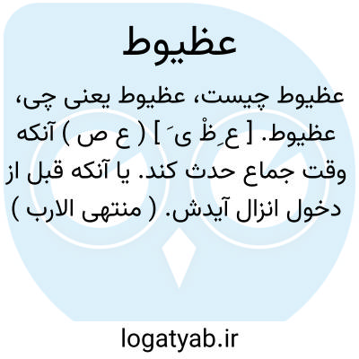 عظیوط. [ ع ِظْ ی َ ] ( ع ص ) آنکه وقت جماع حدث کند. یا آنکه قبل از دخول انزال آیدش. ( منتهی الارب ) ( آنندراج ).