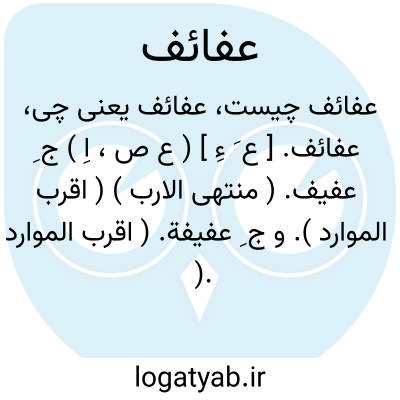 عفائف. [ ع َ ءِ ] ( ع ص، اِ ) ج ِ عفیف. ( منتهی الارب ) ( اقرب الموارد ). و ج ِ عفیفة. ( اقرب الموارد ). رجوع به عفیف و عفیفة شود.