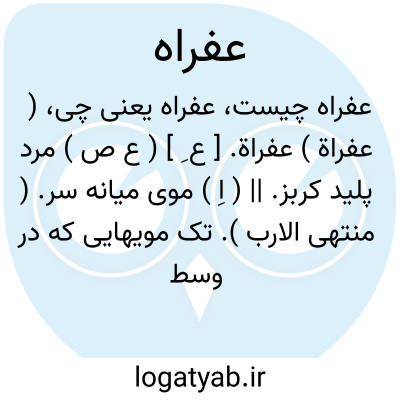 ( عفراة ) عفراة. [ ع ِ ] ( ع ص ) مرد پلید کربز. || ( اِ ) موی میانه سر. ( منتهی الارب ). تک مویهایی که در وسط سر روییده باشد. ( از اقرب الموارد ). || به معنی عفریة است در انسان و خروس. ( از اقرب الموارد ). رجوع به عفریة شود.