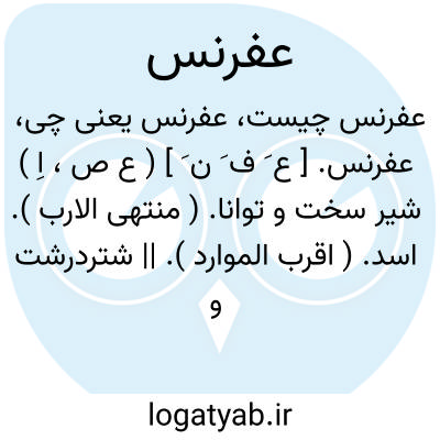 عفرنس. [ ع َ ف َ ن َ ] ( ع ص، اِ ) شیر سخت و توانا. ( منتهی الارب ). اسد. ( اقرب الموارد ). || شتردرشت و سطبرگردن. ( منتهی الارب ) ( از اقرب الموارد ).